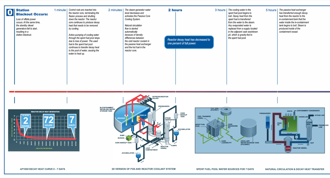 The Westinghouse AP1000® Pressurized Water Reactor (PWR) is simply more advanced than other nuclear power plant technologies available today in the worldwide commercial marketplace. Today, Westinghouse is more focused than ever on making clean, safe and reliable energy possible and practical. Safety is always the number one priority of the AP1000 plant. During a station blackout, or loss of all electrical power, the AP1000 plant's passive safety system shuts down the reactor automatically, with no need for human intervention for up to 72 hours. The AP1000 plant's truly innovative technology harnesses natural forces like gravity, convection and condensation to achieve safe shutdown of the reactor. In 2018 and early 2019, 4 AP1000 units entered commercial operation, marking the first successful deployment of Generation III+ reactors. They then went on to achieve record-breaking first cycle and first refuelling outage performance. The AP1000 plant is now recognized as the most advanced, proven nuclear technology available, delivering safe, clean, reliable power.