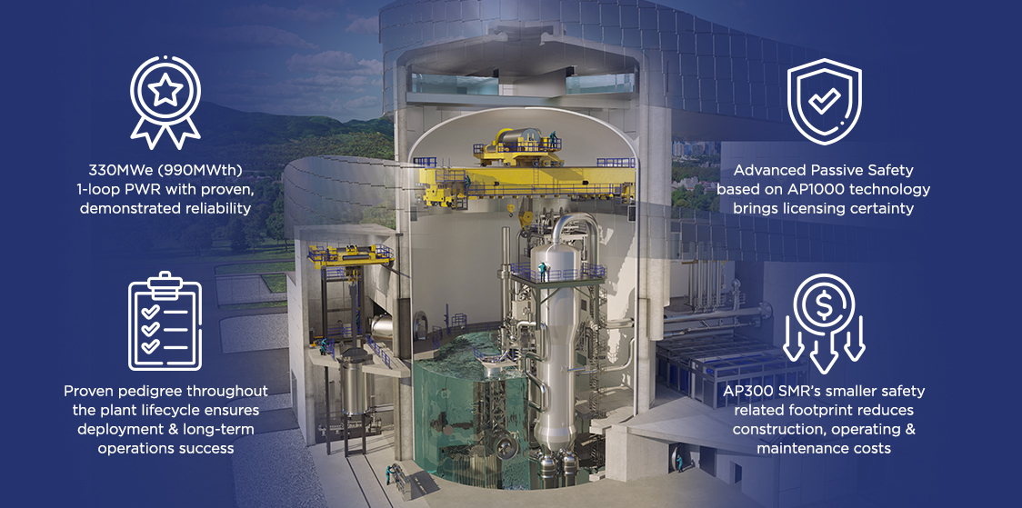 The AP300 SMR complements the AP1000 reactor for a cleaner energy mix, energy security, and grid flexibility and stabilization.