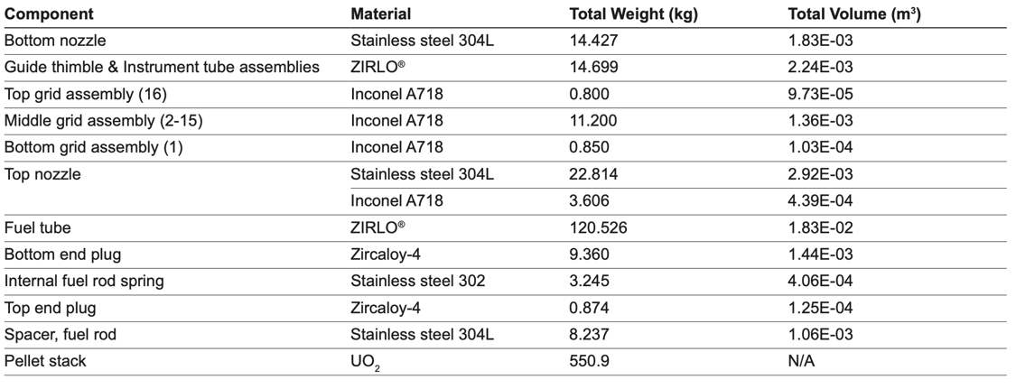| Top nozzle hold down force (nominal) | 7402 N |